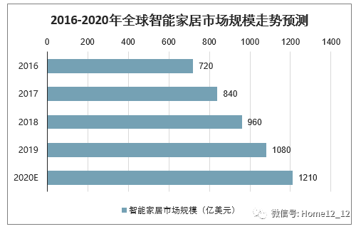 2016-2020年全球智能家居市场规模走势预测