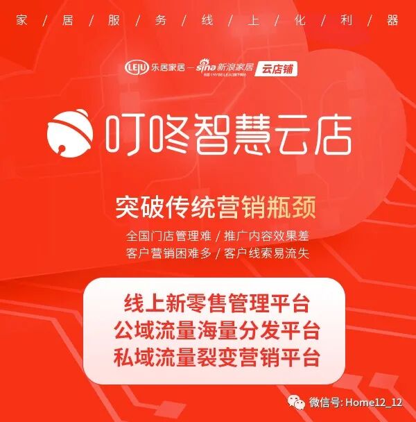 在行业的会议、演讲,在企业对外的发言和阐述中,自然会发现高频出现的「数字化」关键词。今天,企业对数字化转型的需求,没有比2020年更迫切,更有深刻体会。上半年,线上的办公产品,以及线上的企业级数字化系统需求空前提升;下半年,在线下商业好转之际,数字化产品、数字化能力更被企业看重了。8月1日,乐居家居和新浪家居重磅推出「叮咚智慧云店」线上服务营销平台。