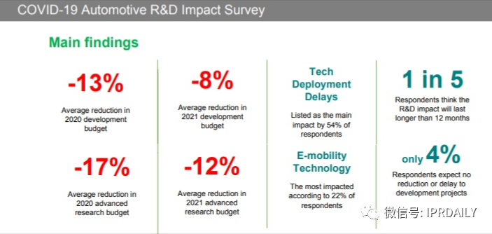 图1 疫情对汽车行业技术研发的影响(数据来自IHS Markit)