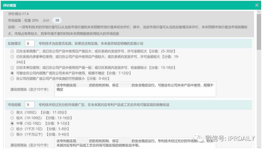 图12 innojet知识产权管理系统专利价值定性评价模块示例