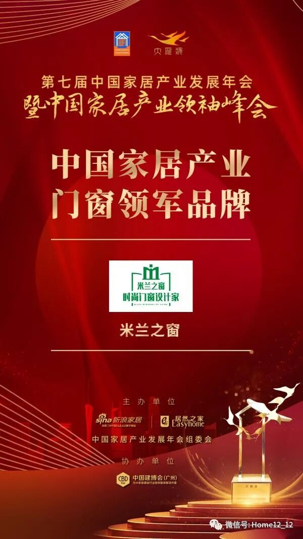 2020年7月8日,在广州举办的第七届中国家居产业发展年会暨中国家居产业领袖峰会现场,「大雁奖」中国家居产业门窗领军品牌榜单揭晓。