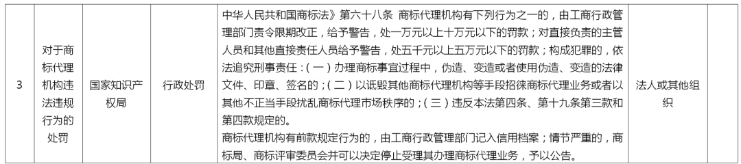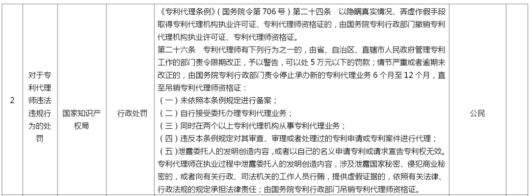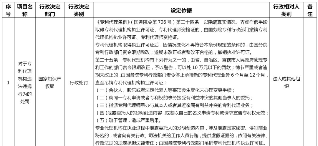 来了!国家知识产权局专利、商标代理行政处罚事项目录