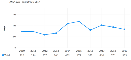 图1.2010-2019年美国联邦地区法院ANDA案件量