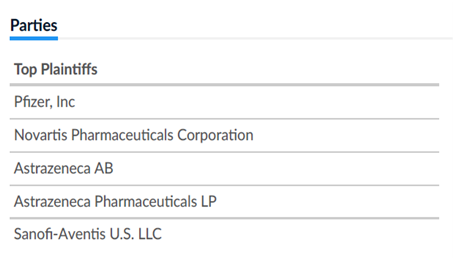 经在数据库中检索发现,Prinston Pharmaceutical作为一方当事人的ANDA案件总计有47件,涉及橙皮书中记载的多种药品的相关专利(具体数据未显示),主要发生于2017年前后。相关专利挑战均通过联邦地区法院的诉讼程序进行,没有通过PTAB相关程序进行无效。