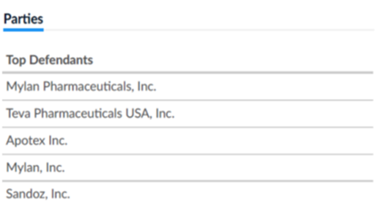 在2010-2019年ANDA案件中,活跃的原告和被告情况如图2所示。