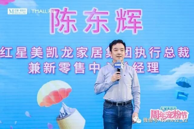 红星美凯龙家居集团执行总裁兼新零售中心总经理陈东辉致辞。他表示,红星美凯龙将推动22个天猫同城站的167家数字化商场,全面参与天猫618促销活动,聚焦尖货爆款、同城折扣卡、轻店、淘宝直播各类营销玩法,结合集团打造的首届红星美凯龙“周年宠粉节”活动,联合天猫及各大品牌打造一场家居行业盛会!