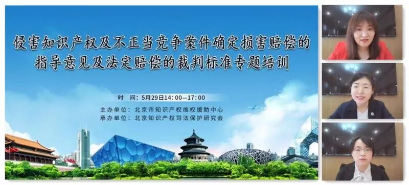 5月29日,由北京市知识产权维权援助中心主办,北京知识产权司法保护研究会承办的《侵害知识产权及不正当竞争案件确定损害赔偿的指导意见及法定赔偿的裁判标准》(简称“《指导意见》”)专题分享会,以线上直播的形式举办。北京市高级人民法院知识产权庭的三位法官就该《指导意见》进行了深入解读。本次活动吸引来自北京市重点企事业单位、高校、科研院所、知识产权服务机构的300余名知识产权从业者参与。