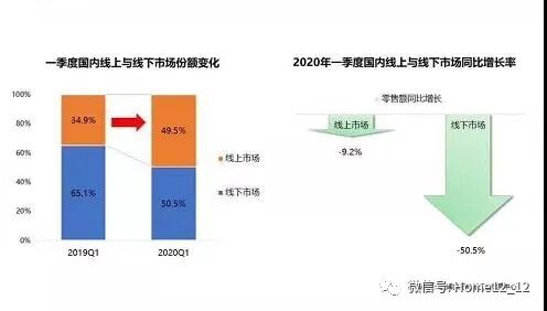 2020年一季度,在疫情“黑天鹅”的影响下,实体店销售几乎停滞,电商却撑起了“半边天”。全国家用电器工业信息中心数据显示,一季度线上市场份额占比已经达到了49.5%,同比增长14.6个百分点。在零售额方面,线上市场明显更抗跌,一季度线上市场零售额下降了9.2%,而线下市场则是下跌了50.5%。