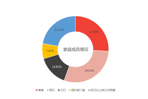 受调查人群中,两口之家占29.63,%单身人群占25.93%,这两类人群总数超过一半以上,越来越多的年轻群体开始关注装修。