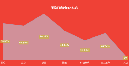 从对家居舒适度影响的调查数据不难发现,噪音隔离、光线强弱成为最受关注的点,而更多的消费者认为静音门和双层玻璃窗户的选择更能解决噪音问题。这也不难解释,门窗在装修过程中的关注度不断提升。