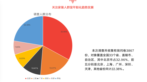 本次调查共收集有效问卷3867份,调查对象覆盖了全国33个省、直辖市、自治区,其中北京市占32.96%,参与调查人数最多,前五分别是北京、上海、广州、深圳、天津,其他省份共计22.38%。