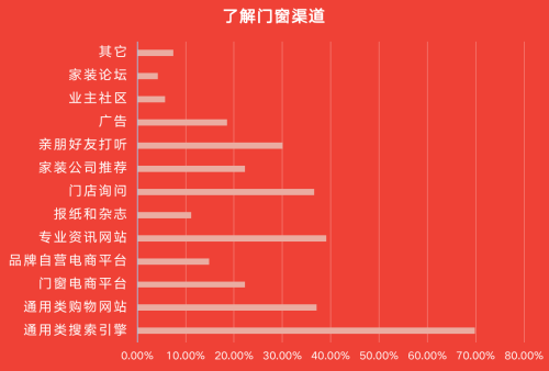 在装修之前更多的消费者选在网上搜索相关信息,70%左右的人群会通过搜索引擎了解门窗品牌,这也符合了当代消费群体的特征,而这一趋势还在加剧。