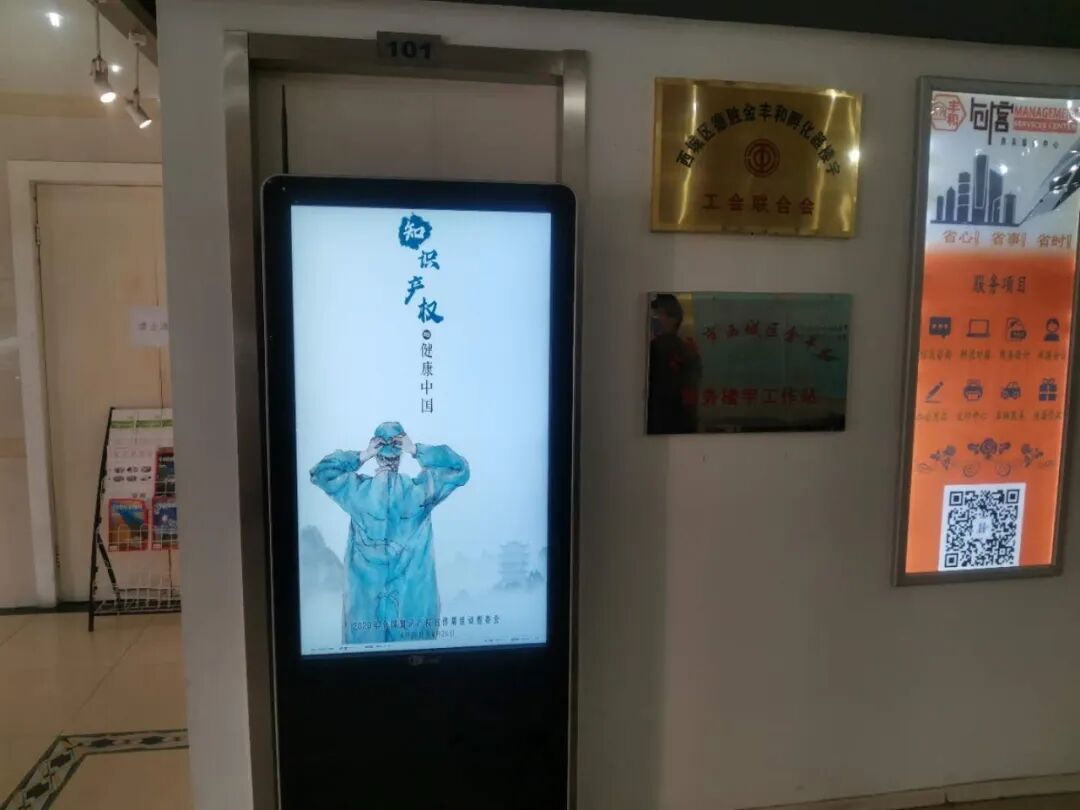 金丰和工作站自4月20日起,在ABCDE五座楼宇大厅内张贴北京市知识产权局发布的宣传海报,充分利用楼宇电视屏及LED宣传屏滚动播放知识产权宣传周海报以及市知局宣传视频,并于金丰和C座户外大屏宣传本次活动主题:“助力疫情防控,服务首都高质量发展”,全园区范围内营造良好的知识产权保护氛围,提高企业知识产权保护意识,加强企业技术创新能力和市场竞争力。