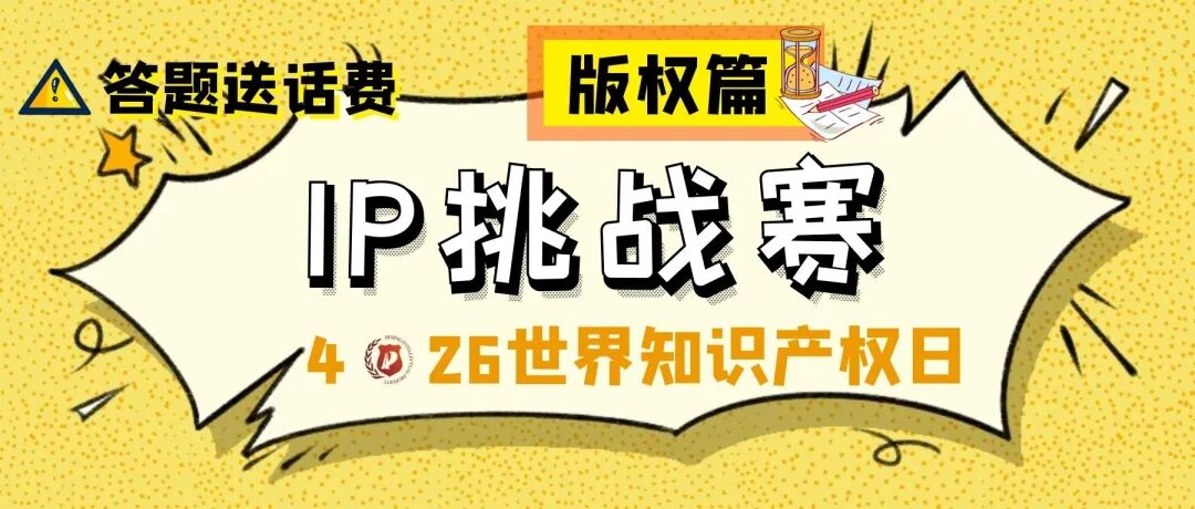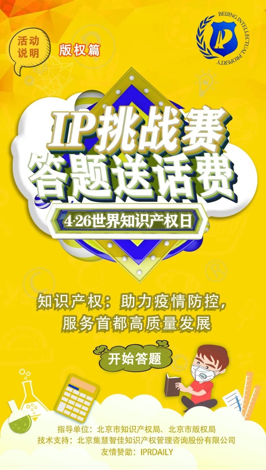 为迎接第20个“4·26”世界知识产权日,提升全社会知识产权意识,北京市知识产权局和北京市版权局于“4·26”期间共同推出“IP挑战赛”活动。此次挑战赛共有四期,分别为“专利篇”“商标篇”“版权篇”和“地理标志篇”。今天,我们推出的是“版权篇”,欢迎大家积极参与挑战哦!