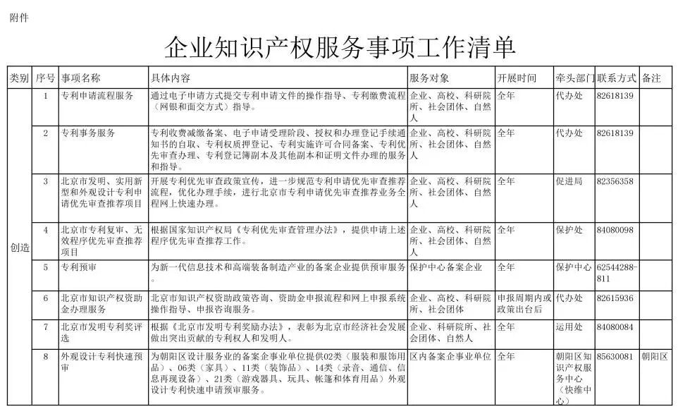 北京市知识产权局发布企业知识产权服务事项工作清单
