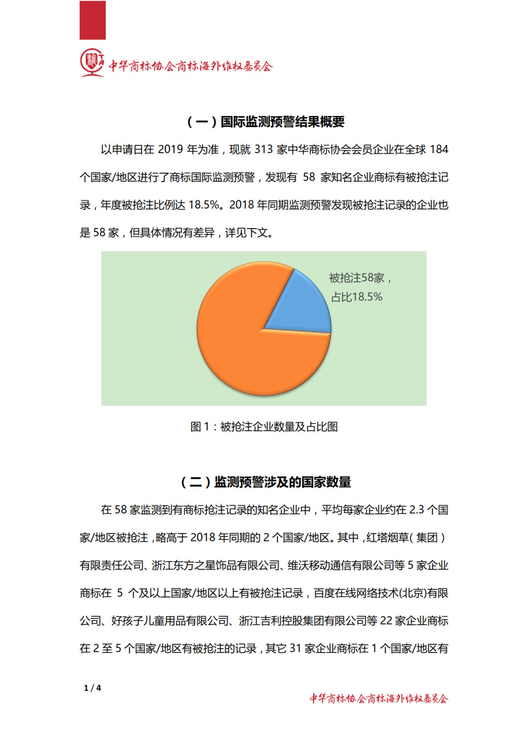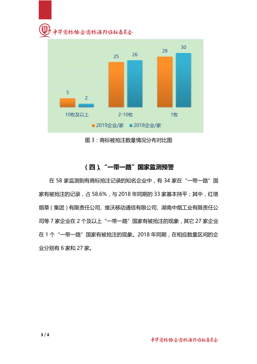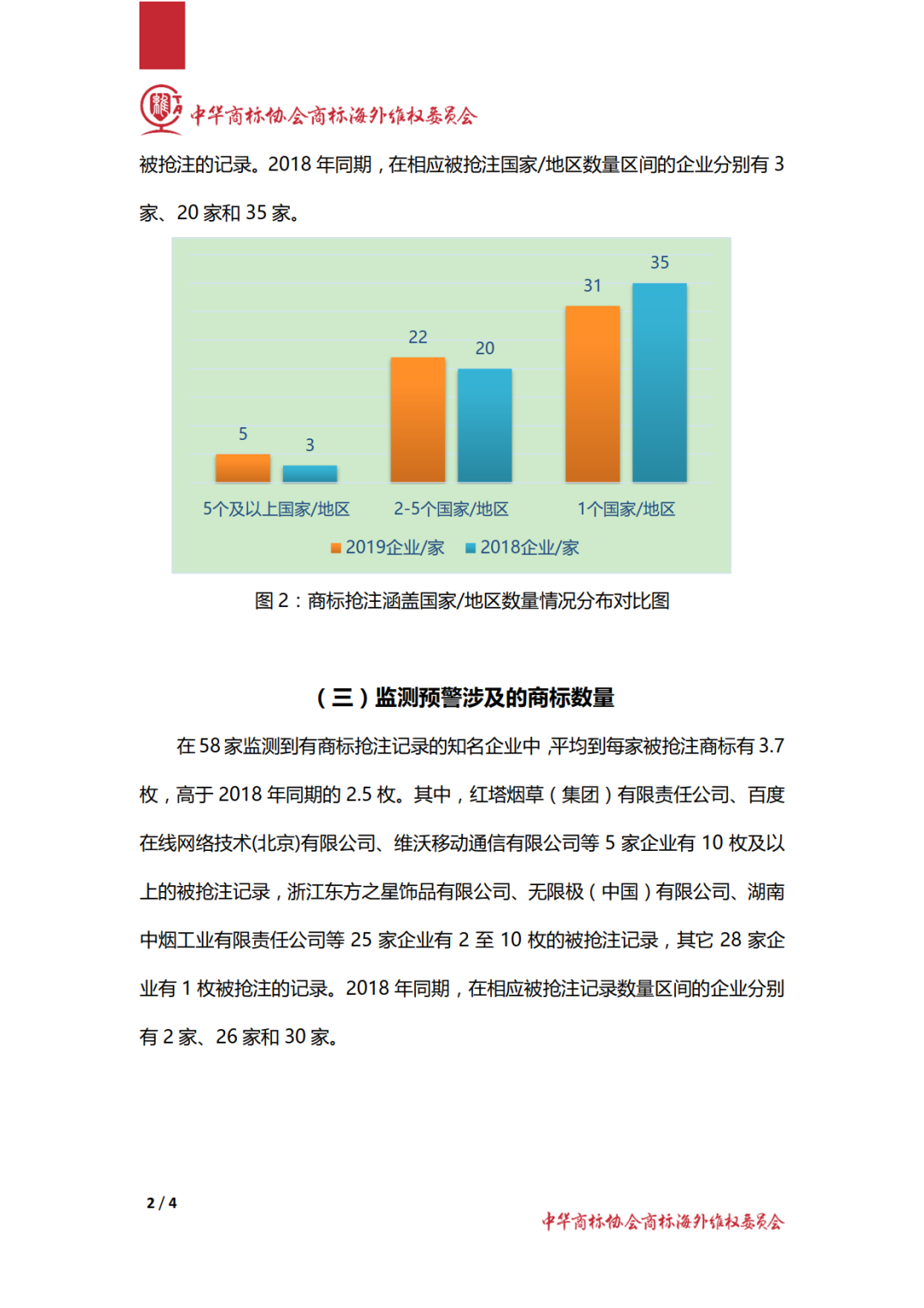 中华商标协会商标海外维权委员会发布 《中华商标协会会员企业2019年度国际商标监测预警报告》