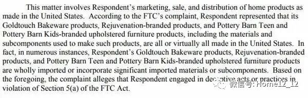 美国消费者保护机构FTC’s Bureau of Consumer Protection的负责人Andrew Smith表示:“大多数消费者希望购买美国制造的产品,并且相信Williams-Sonama这样的公司向消费者传递的信息。但若公司欺骗顾客,我们将依法追究其责任。”