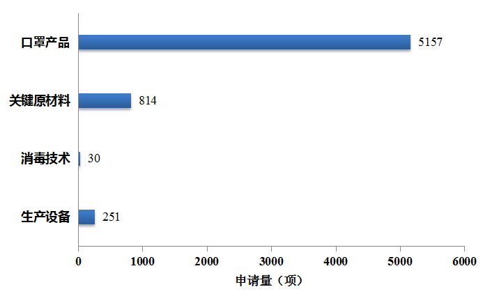 统计表明,在医用口罩产业链的四个关键环节中,口罩产品全球专利申请数量最多,为5157项。