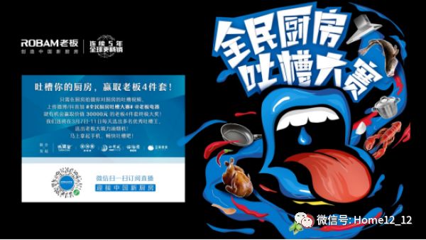 发布会前,老板电器在网上发起“全民厨房吐槽大赛”和“新厨房大猜想”活动,征集了百位网友对“旧”厨房的“花样吐槽”,并整理出《旧厨房的100个槽点》,引发网友高度认同。