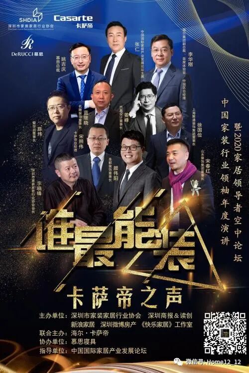 在中国国际家居产业发展论坛的指导下,深圳市家装家居行业协会与中国财经大报深圳商报共同联合新浪家居、深圳微博房产、深圳广电《快乐家居》工作室,共同主办中国家装行业领袖年度开年演讲。危急时刻的行业发声得到了责任企业的认可和支持,年度演讲由国际高端家电品牌卡萨帝联合主办,慕思寝具全程协办。