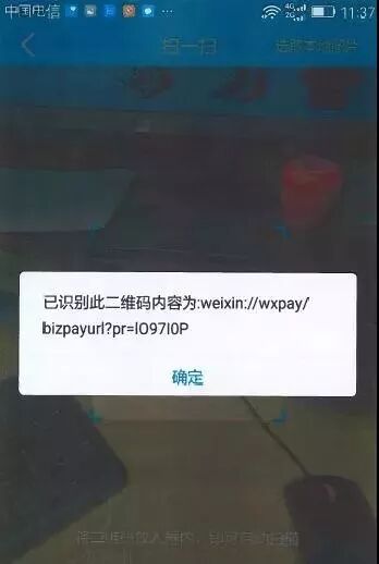 两原告发现,将“凡客诚品”购物网站提供给用户扫描的微信付款二维码图片进行解码,得到的字符串信息为:weixin://wxpay/bizpayurl?pr=IO9710P。(下图所示👇)
