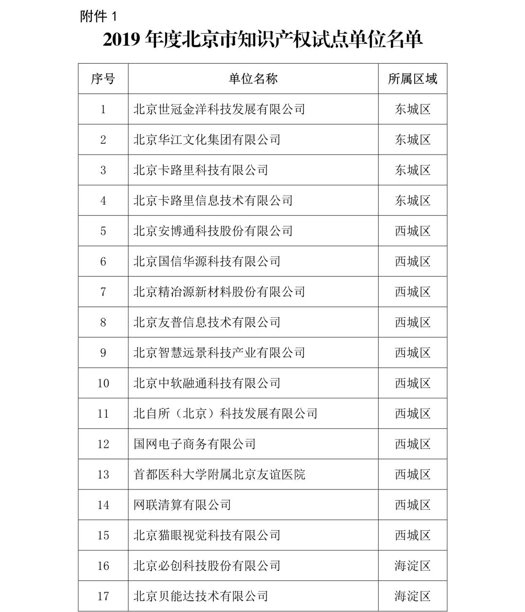 1. 2019年度北京市知识产权试点单位名单