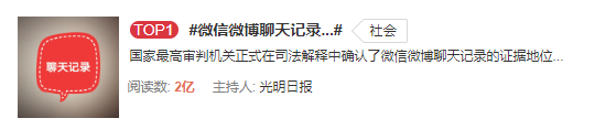 最高法:微信、微博聊天记录可当证据!影响十几亿人,还上了热搜第一!