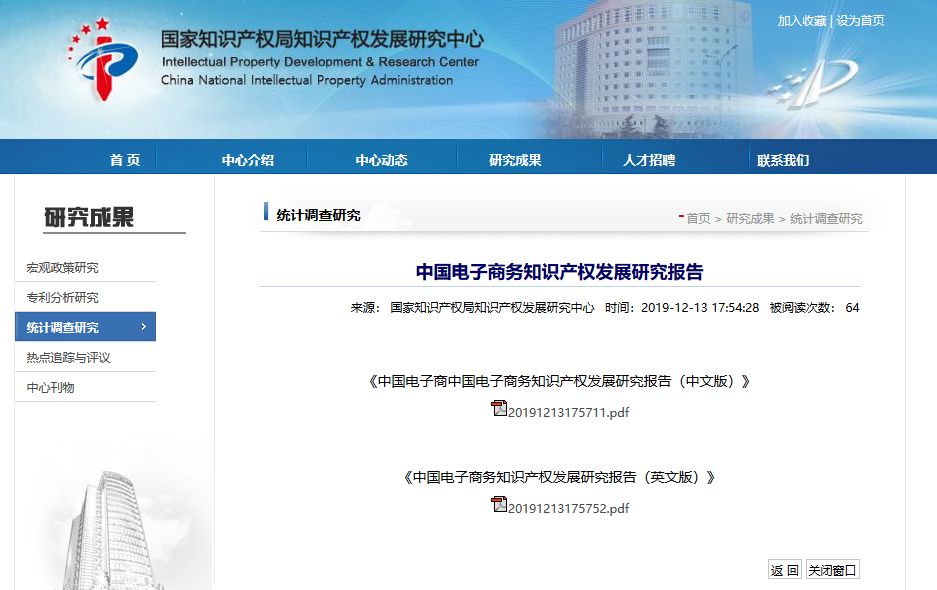IPRdaily导读:近日,国家知识产权局知识产权发展研究中心发布了《中国电子商务知识产权发展研究报告(2019)》,详情见下文。