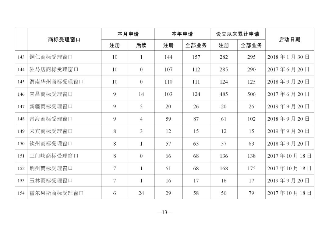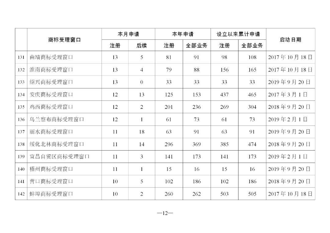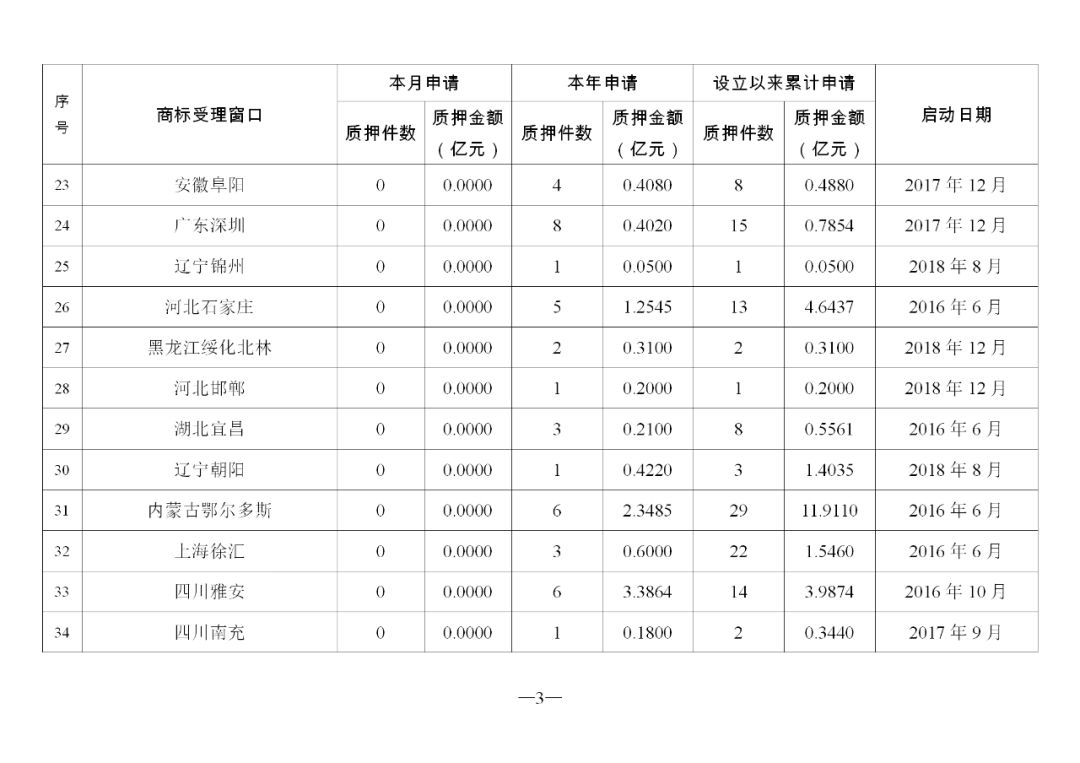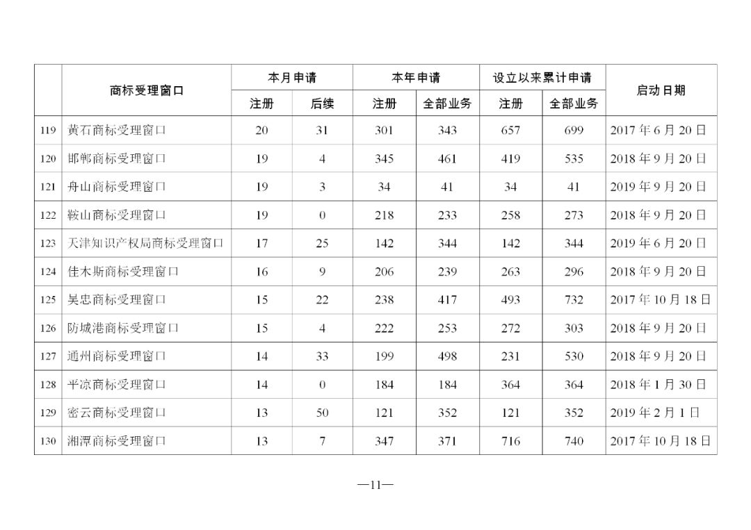 原标题:2019年11月地方商标受理窗口和质押受理点工作情况