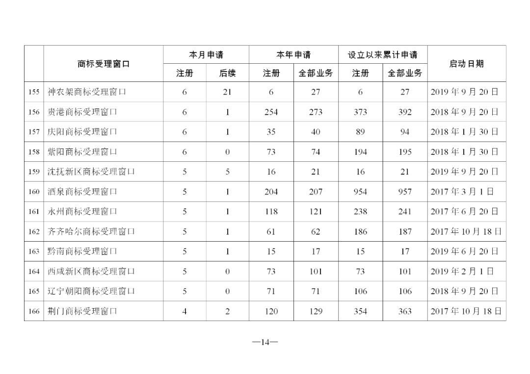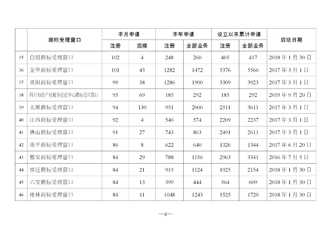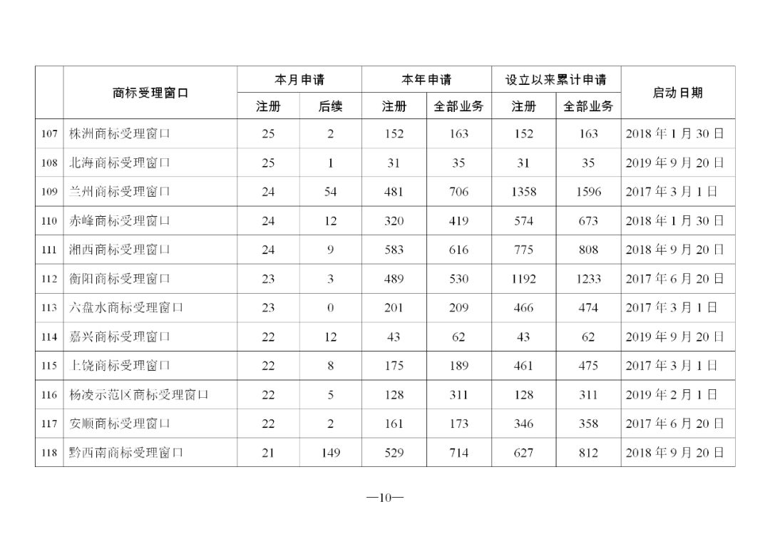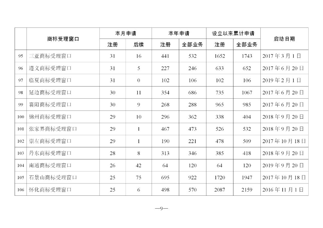 原标题:2019年11月地方商标受理窗口和质押受理点工作情况