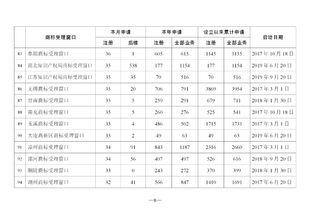 2019年11月地方商标受理窗口和质押受理点工作情况(全文)