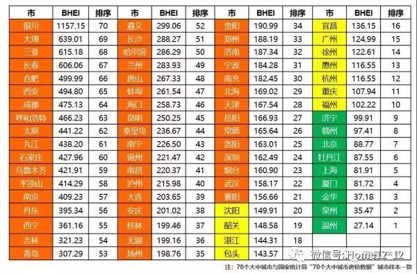 2019年全国70个大中城市BHEI排序。图/中国建筑材料流通协会