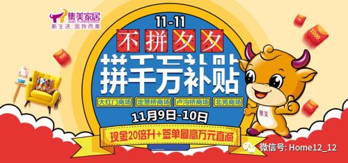 近年来,随着互联网的兴起,网络购物节大行其道,引发了一波波的全民购物热潮,刚刚过去的双11就是其一。回顾本届双11活动,集美家居整合多方资源,打破传统家居企业线上体验不足的弊端,通过线上+线下的多重活动内容,以“不拼夕夕拼千万补贴”为主题,为一直支持集美的粉丝们带来了一场别具一格的特惠盛宴。