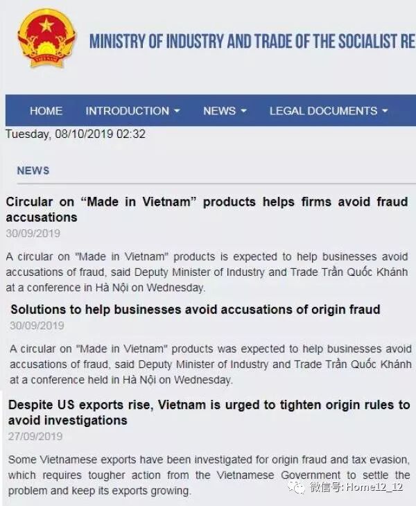 目前在越南工贸部的官网上,可以发现这段时间以来,越南官方频频更新“洗产地”的相关新闻,可见其重视程度。