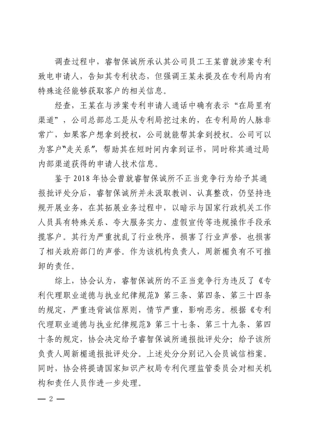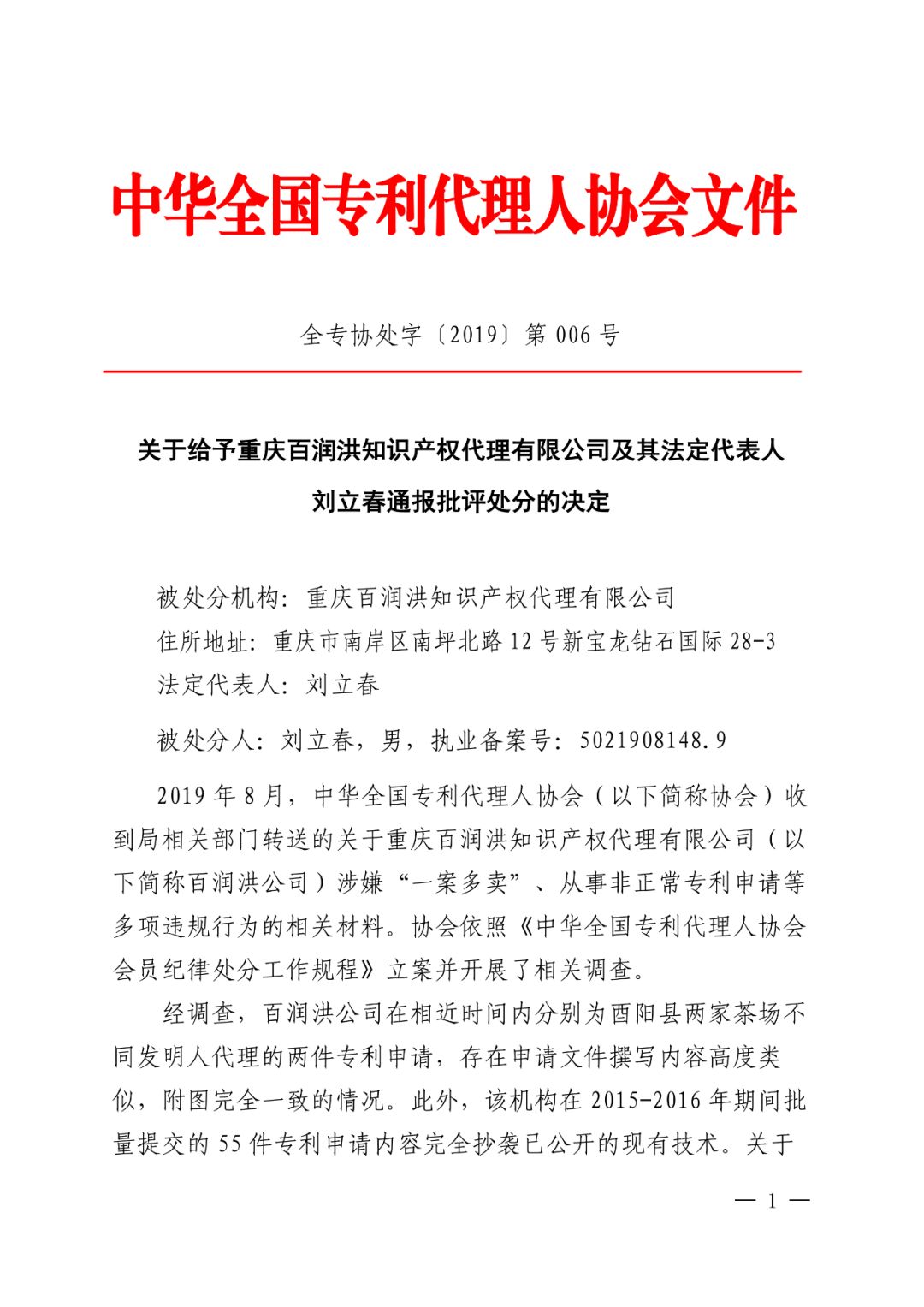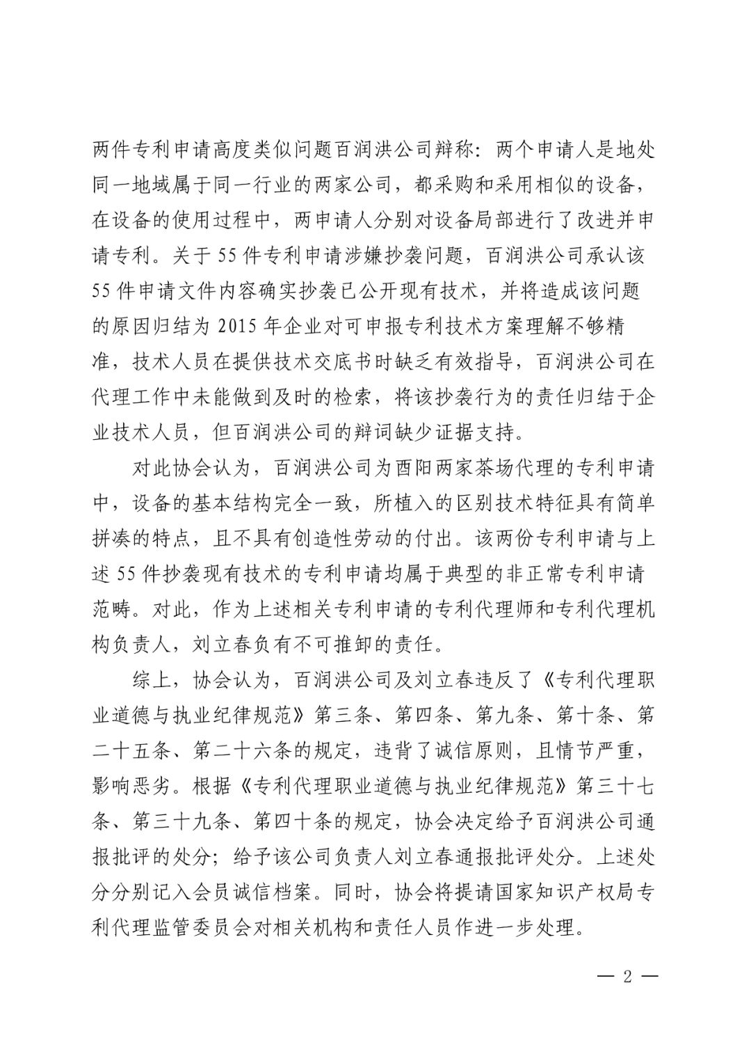 2.关于给予重庆百润洪知识产权代理有限公司及其法定代表人刘立春通报批评处分的决定.pdf