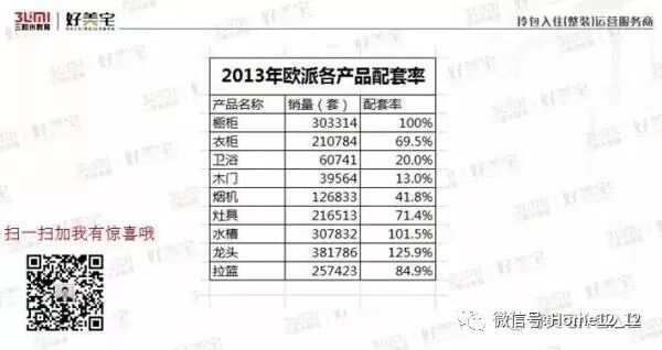欧派在2013年每100套橱柜可以带动41套烟机,71套灶具,101套水槽,126套龙头,84套拉篮。