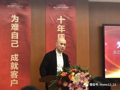 业之峰装饰集团董事长张钧上台致辞,他表示,家装市场虽然很大,但整体满意度不高,更多的是在商言商。随着社会的进步,业之峰不仅要把本业做好,还要把客户装在心里,不能只盯着客户钱包,要感恩客户给业之峰服务他的机会,带来温暖光明,创造无形价值。此外,整体行业还存在诸多乱象,企业质量良莠不齐,为此,业之峰号召业内公司一起向有温度的公司转变。