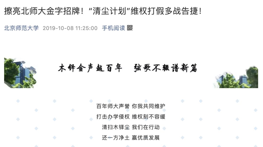 北师大“清尘计划”多战告捷,网友:坚决支持维权!