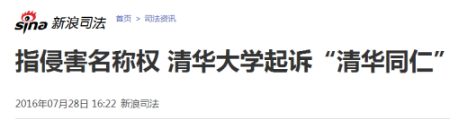 2016年,清华大学起诉北京清华同仁科技有限责任公司,认为被告在其企业名称中使用“清华”字样已经构成对原告名称权的侵害。