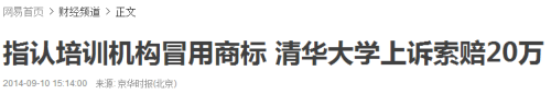 2014年,北京德慧管理咨询有限责任公司(下称尚德慧公司)使用“清华大学”商标招收学员,清华大学以商标权被侵犯为由,将该公司诉至朝阳法院并索赔20万元。