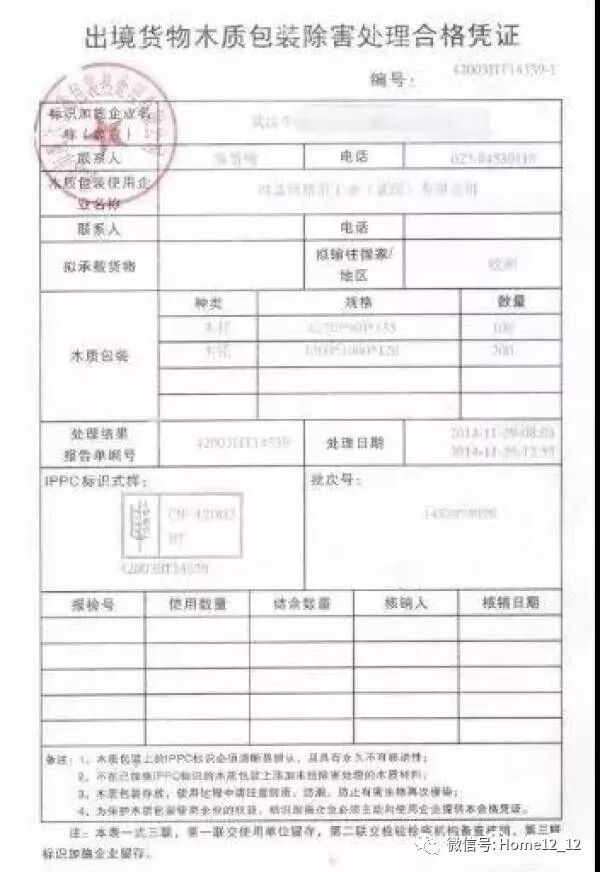 海关最新通知:自2019年8月26日起,出口查验货物如有木质包装(指用于承载、包装、铺垫、支撑、加固货物的木质材料,如木板箱、木条箱、木托盘、木框、木桶、木轴、木楔、垫木、枕木、衬木等)。请在查验前向海关查验部门提交《出境货物木质包装检疫除害处理合格凭证》原件,烦请大家相互转告!