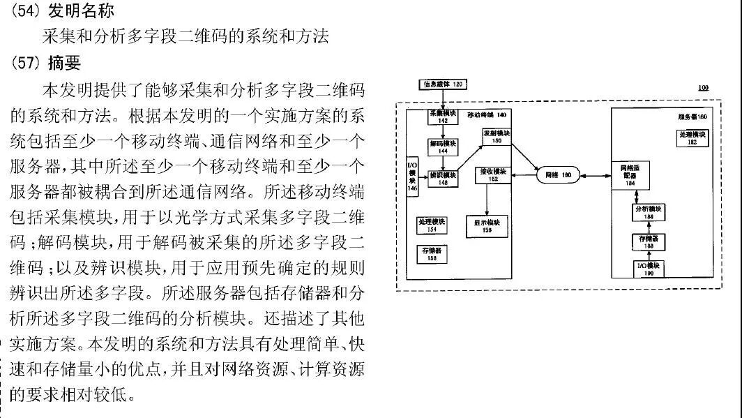 两原告是第200610168072.2号、名称为“采集和分析多字段二维码的系统和方法”的发明专利专利权人。该专利既要求保护一种采集和分析多字段二维码的系统,也涉及如何实现采集和分析多字段二维码的方法。
