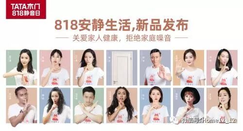 面对严峻地噪声问题,TATA木门首创“静音日。同时,TATA木门力邀袁姗姗、娄艺潇、江一燕、陈志明、胡军、周群、吉克隽逸、瞿颖、邓莎、邹市明、张俪、安又琪、黄雅莉13位安静生活体验官,在8·18静音日进行全国13城联动,拒绝家庭噪音,倡导静音生活方式。