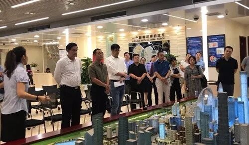 许伟一行首先来到北京商务中心区公共服务管理中心展示大厅,参观了北京CBD的建设成果展览和全景沙盘,认真听取讲解。