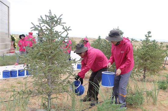 居然之家集团领导前往纪念阿拉善SEE生态协会发起人、前首创集团董事长刘晓光先生的晓光林,向晓光碑敬献花篮,深切缅怀这位热心公益的企业家。居然之家集团领导在纪念园内种植樟子松,并为晓光林浇水。