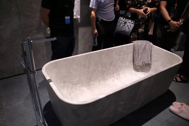 据悉,此浴缸是用一块完整的石头开凿而成,浑然一体的纹理非常特别。