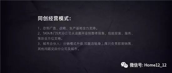 过去,家居经销商的门槛其实很高,一方面要承担门店和产品的大额资金投入,另一方面也需要负担安装配送等服务成本。因此,很多优秀的人才被资金和成本的篱笆拦在体系之外。基于这样的问题,TATA木门通过拆解经营模式,首创“同创经营模式”。在这一模式下,加盟店只负责销售,如学习成本高、经营难度大的安装、服务、策划等环节交由五个分公司和总部全权负责。