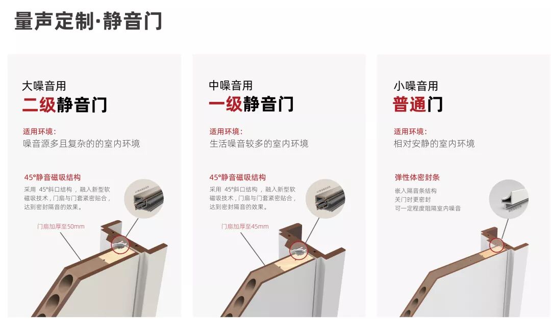 45°斜口静音门:主要阻隔居室内部所产生的噪音及家用电器所产生的噪音。