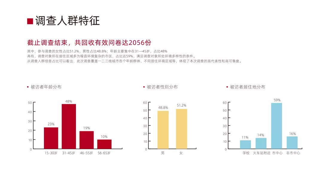 本次调查指向全国一二三线城市15—65岁的居民,从多个维度对中国家居噪音现状进行深入解析,形成客观、真实、系统、权威的《中国家居噪音现状调查报告》。