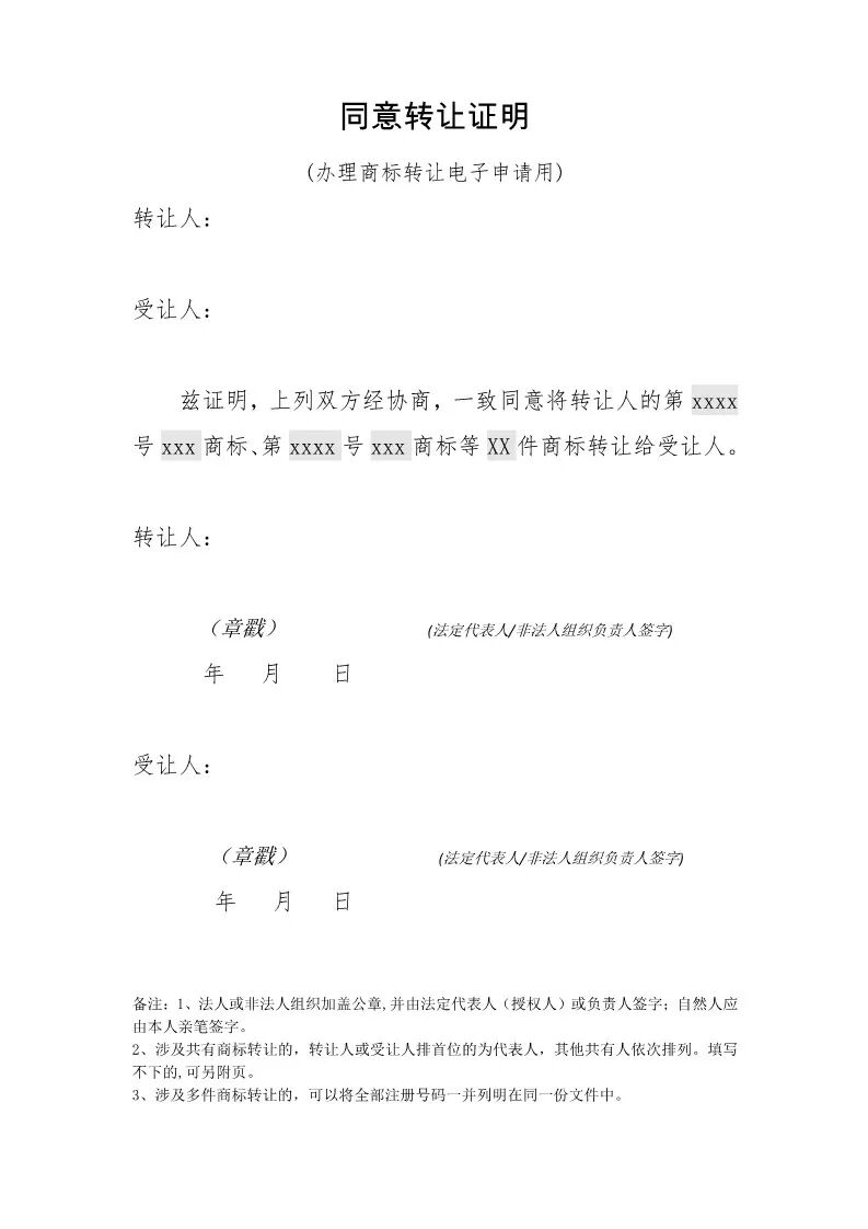 3. 办理转让的,还应提交同意转让证明,需转、受让双方法定代表人(负责人)签字并加盖公章。同意转让证明样式见附件。